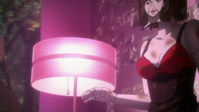 新OPと重ね気掛かる常守朱監視官のギョロ目と配色PSYCHO-PASS第14話
